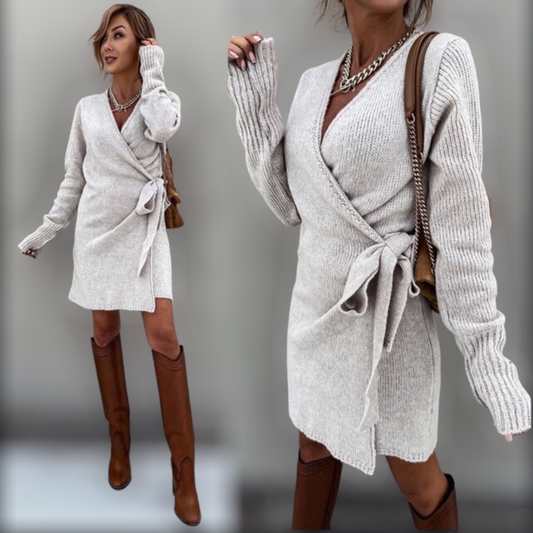 Autumn And Winter Knitted Slim Double V-Neck dress.