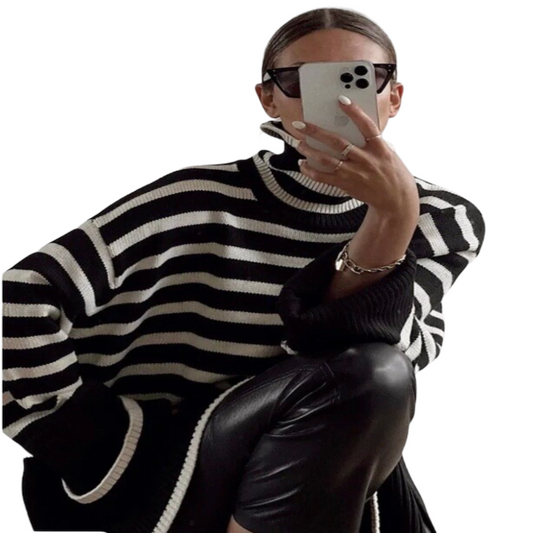 Turtleneck Striped Print Loose Pullover Tops 2023.