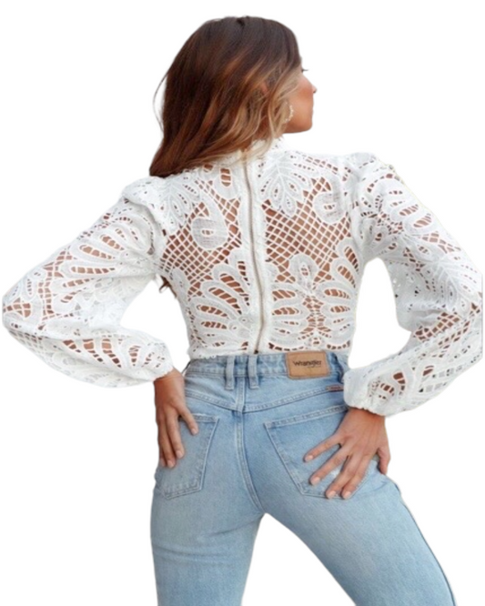 Women's Fashion Sexy Hollow Long-sleeved Lace Top.